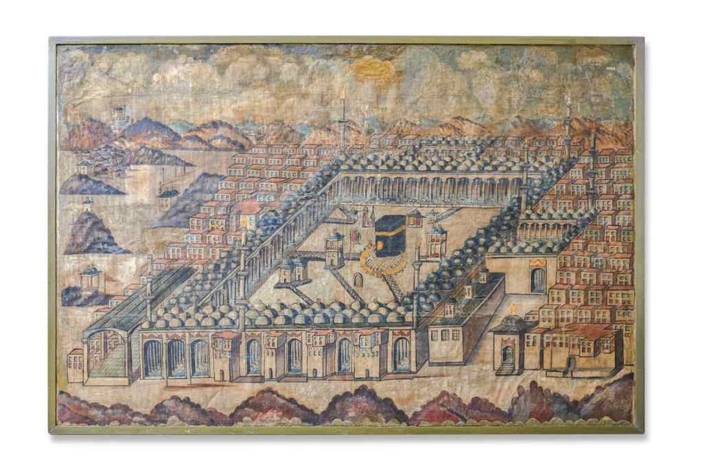 وتشمل القطع الأثرية المصرية عدة قطع مصنوعة خصيصاً للكعبة المشرفة وهي مفتاح للكعبة من النحاس من العصر وستارة من القماش المزخرف بالكتابات من عهد الملك فؤاد الأول تخص باب التوبة، وهو أحد الأبواب الثلاثة للكعبة، بالإضافة إلى جزء من الكسوة الداخلية للكعبة. كما تضمنت لوحة فنية توثِّق الحرم المكي قديماً وما حوله من مبانٍ وطبيعة جبلية.