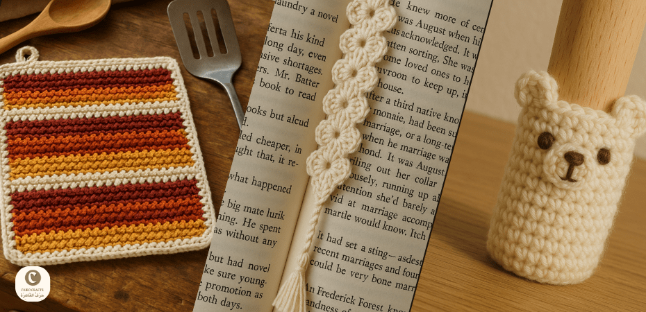 سواء كنتِ مبتدئة أو خبيرة في صنع الكروشيه، ستجدين هنا فكرة تلهمك وتضيف لمسة دافئة وعملية إلى منزلك. من وِقايات الأكواب إلى سلة للثوم والبصل، اكتشفي من هنا أفكارًا كروشيه عملية ورقيقة للاستخدام في البيت: